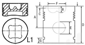 Bore 101.05 Piston rings 3 Al-fin – A 71.70 B+ / B- 20.41 – D 120.75 E 34.925 F 61.40.ММ