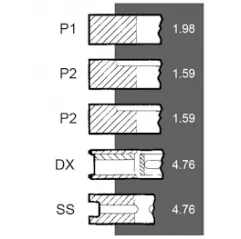 Bore 79.38 Piston rings 5 Al-fin – A 45.61 B+ / B- – C – D 79.90 E 23.81MM